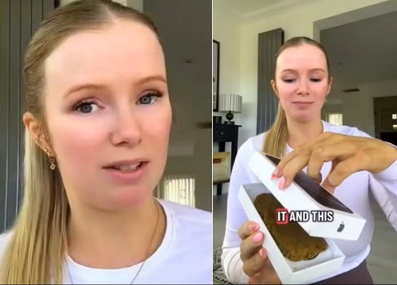 Rebecca Oman pagou R$ 10 mil por iPhone 16 e recebeu massa que 'lembra cocô' dentro de caixa da Apple — Foto: Reprodução