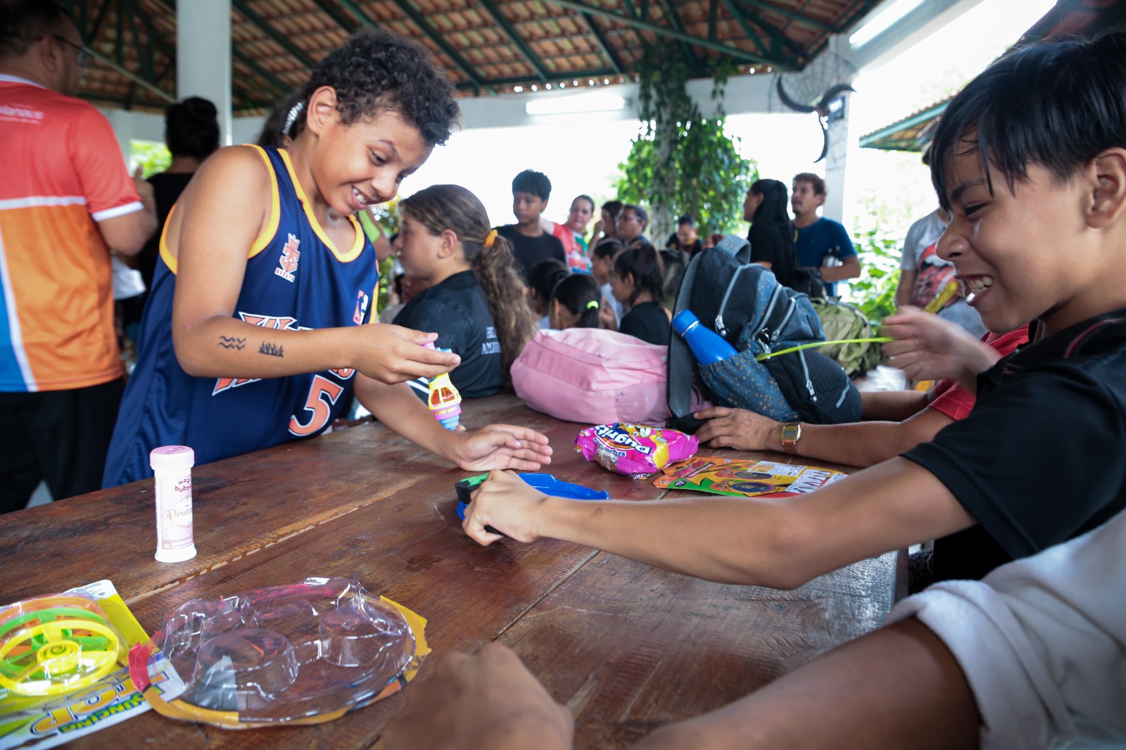 A iniciativa desembarcou em duas comunidades polos: a comunidade Monte Sinai do Igarapé Açu, visitada pela manhã, e a comunidade Indígena Nova Esperança do rio Cuieiras, à tarde. O objetivo foi garantir que a festa do Dia das Crianças chegasse a todos os pequenos manauaras, reforçando o compromisso de uma gestão solidária e igualitária.