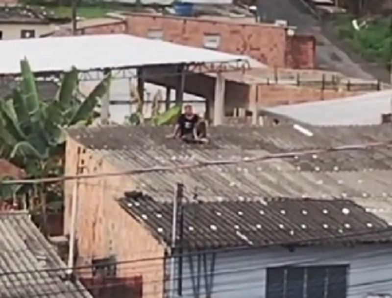 Um homem não identificado escalou um muro e subiu no telhado de uma residência, após ser pego por populares na rua Papacuia, bairro Jorge Teixeira, zona leste de Manaus.